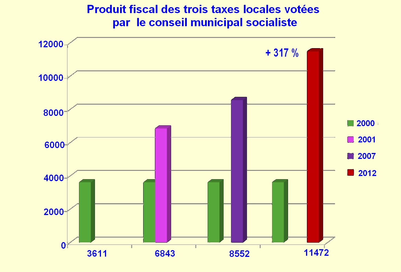 | A EYSINES, les impôts locaux par habitant ont donc augmenté de 322 % entre 2000 et 2012. Pendant la même période, les communes françaises similaires à Eysines ont vu leurs impôts locaux augmenter de 24,09 % en moyenne. |